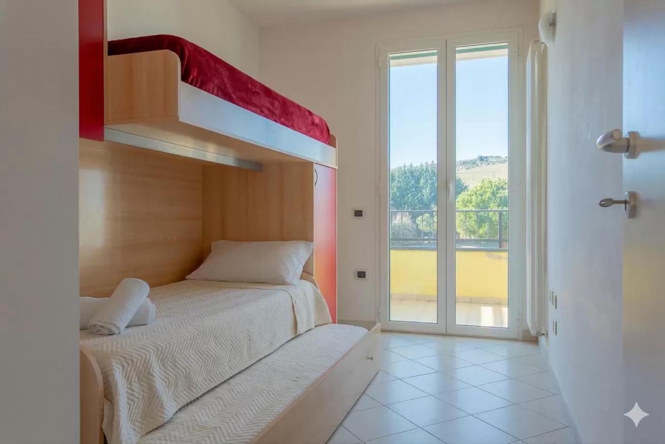 Zona Notte: Una camera matrimoniale (con balcone privato e aria condizionata) e una camera tripla versatile con letto a castello e balcone.