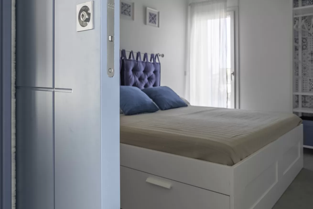 L’alloggio è completamente arredato e composto da un soggiorno con cucina a induzione, forno a microonde, piccolo frigorifero, TV e divano. La zona notte comprende due camere da letto, una matrimoniale e una con letto a castello. Completa la sistemazione un bagno con doccia. Le camere sono dotate di lenzuola e asciugamani.